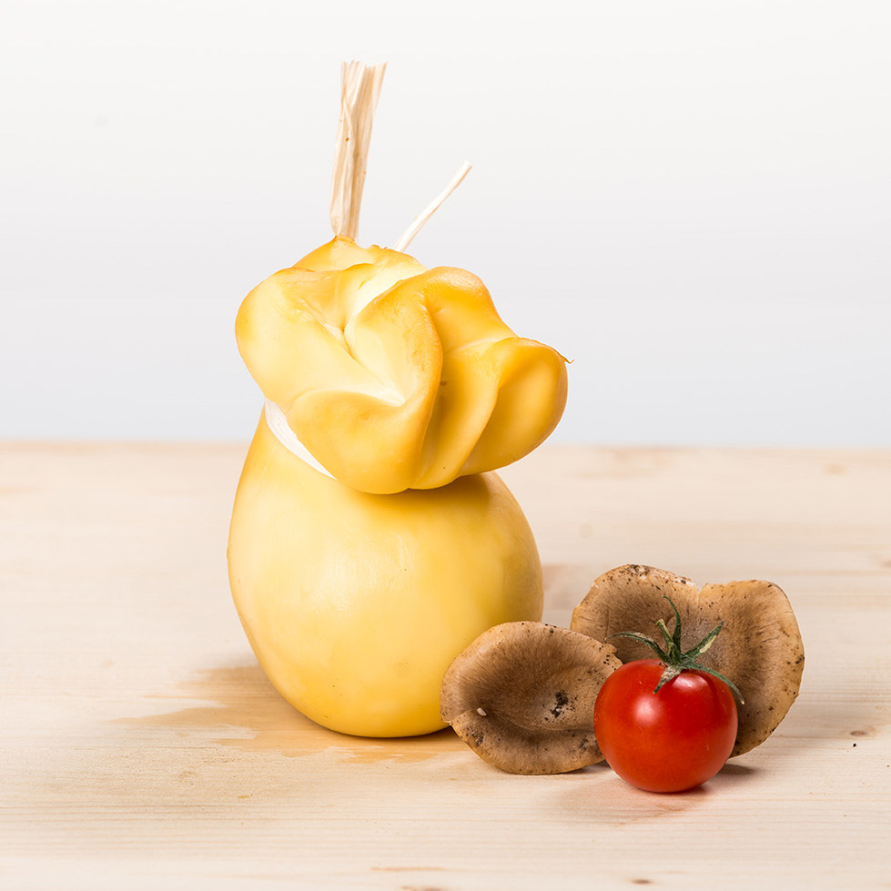 Formaggio stagionato dal gusto inedito, è un’esplosione di sapori che virano dal saporito allo zuccherino mantenendo un gusto delicato, un mix dato dalla sua breve stagionatura. Consistente e leggermente dorata la Scamorza Affumicata,